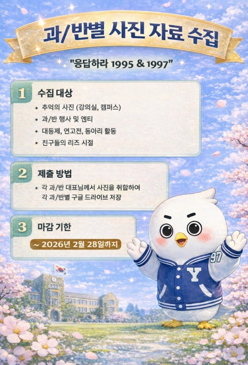 - 수집된 자료는 25주년 재상봉 기념책자 제작 목적으로만 활용되며, 종료 후 안전하게 폐기됩니다.